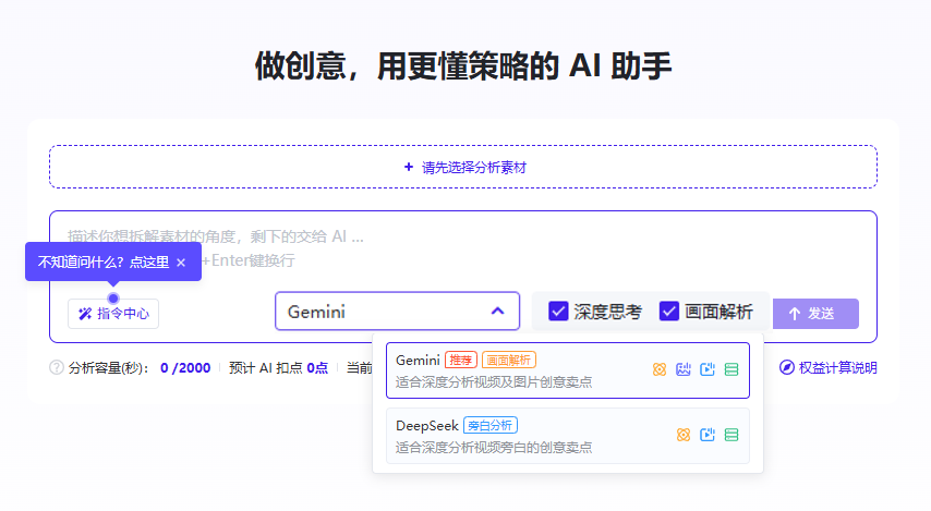 接着,来到创意管家 AI。记得要选择 Gemini 大模型,帮你拆解到画面要素。