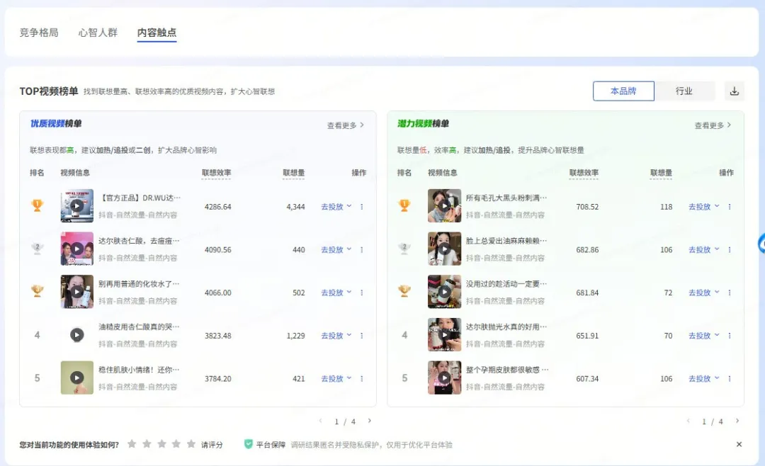 通过巨量云图的「内容触点」,可以找到品牌心智词关联的星图视频,进而找到跟你的心智更匹配的达人。