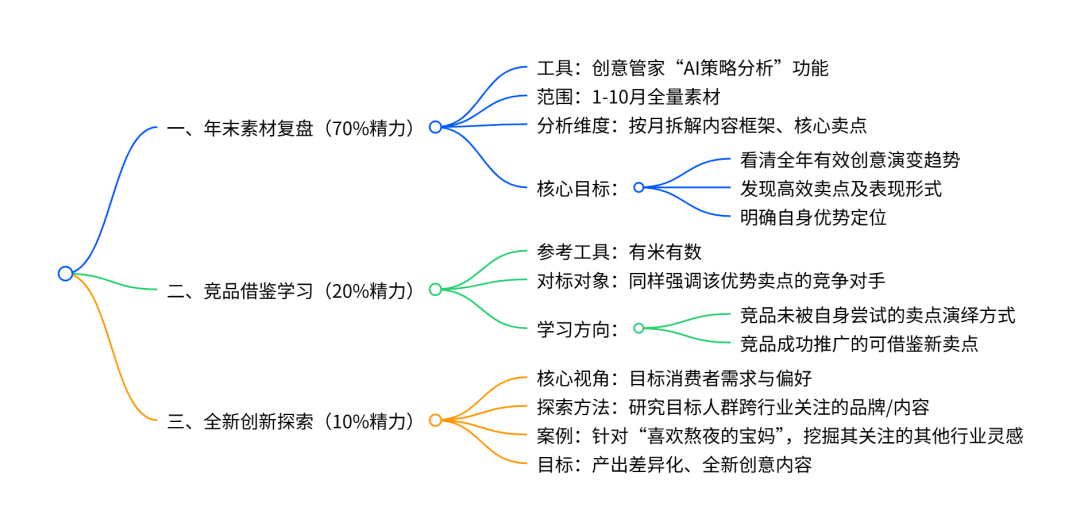 对于电商团队创意策略的构建,我建议采用“70/20/10”法则来分层构建迭代闭环: