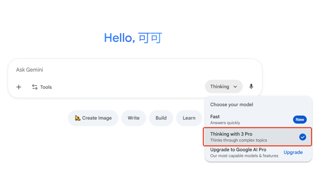 打开 Gemini,记得记得选择 3 Pro 模型!