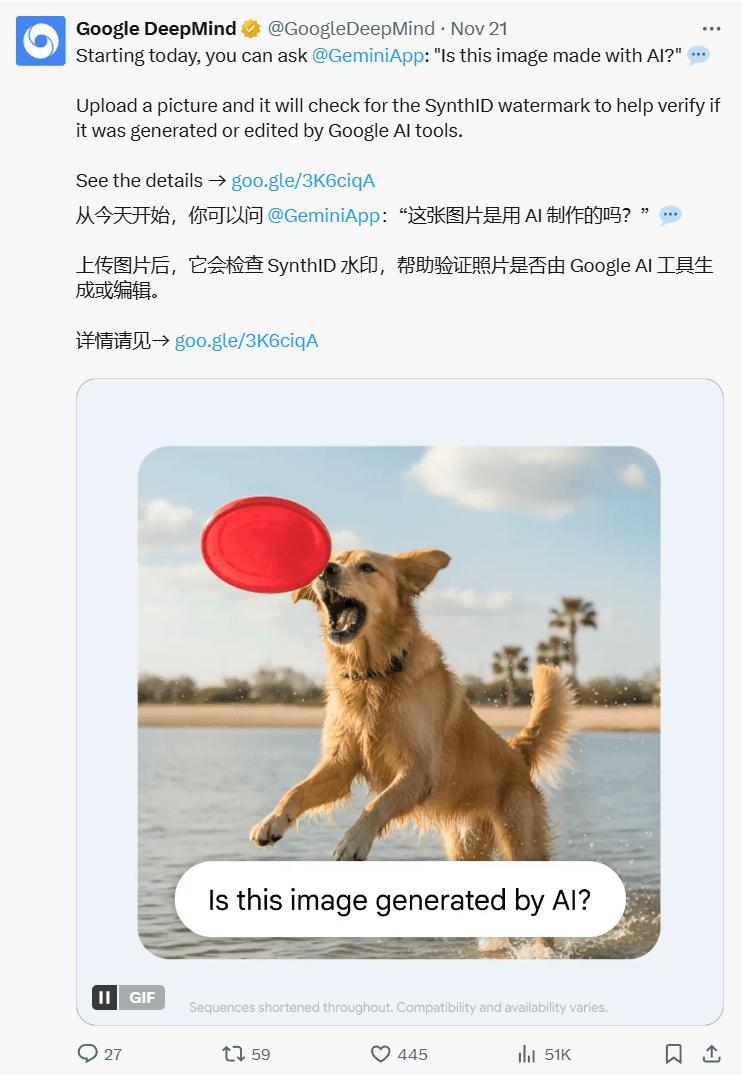 没错!而且官方也说现在可以让它识别是不是 AI 制作的。